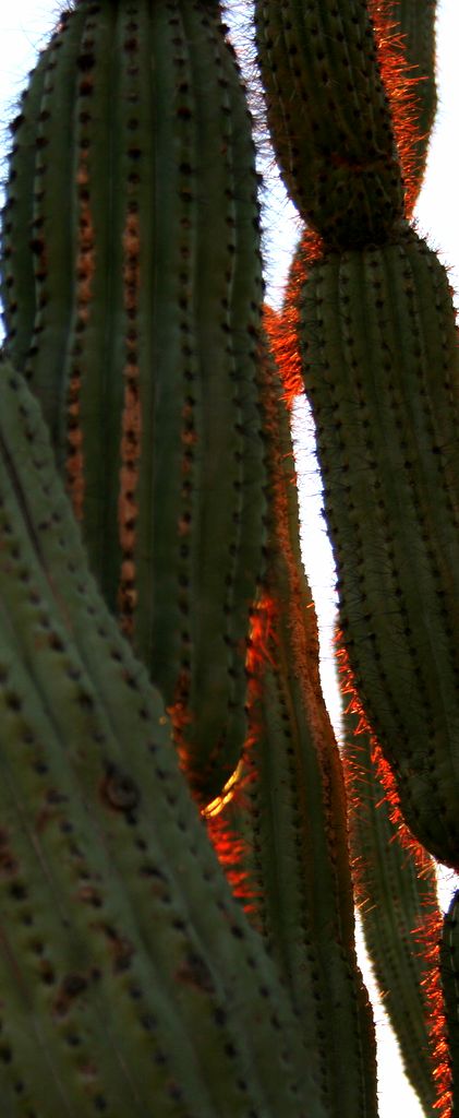 Close up of the Organ Pipe cactus spines - glowing red!